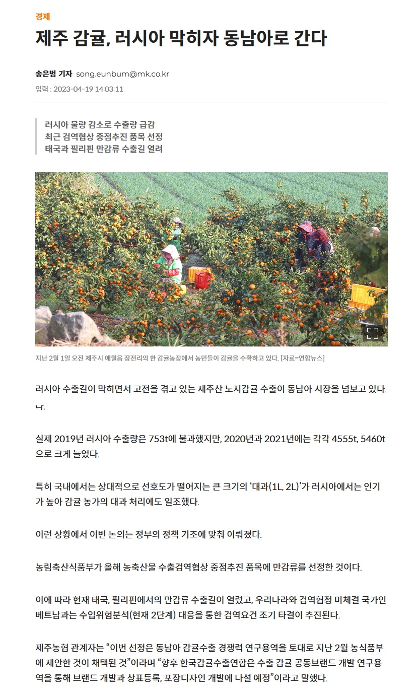 2186 | 제주감귤 2070년 조수입 2조원 시대 연다 | 2 | 총무기획부 | 2025-10-16 | 63 |