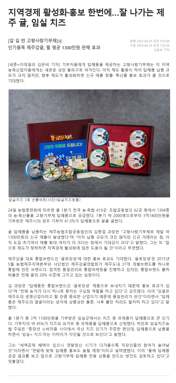 지역경제 활성화·홍보 한번에…잘 나가는 제주 귤, 임실 치즈