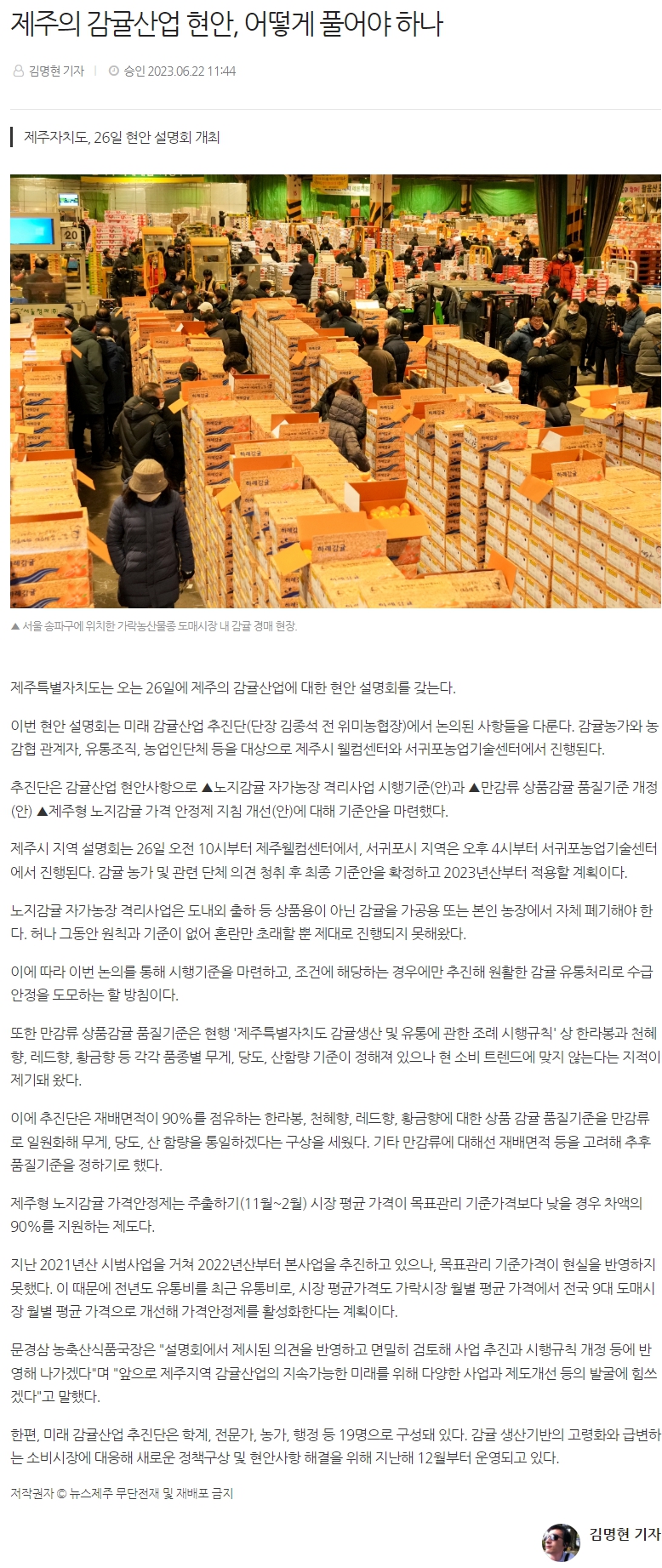 제주 감귤산업 현안, 어떻게 풀어야 하나