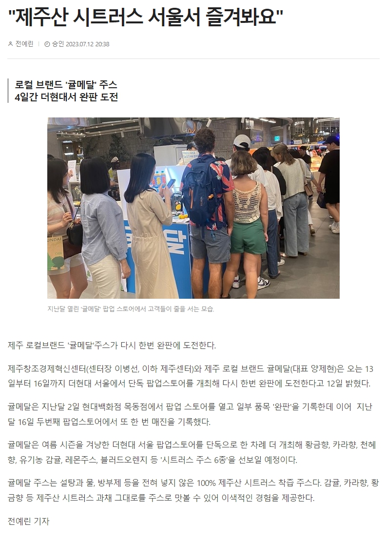 "제주산 시트러스 서울서 즐겨봐요"
