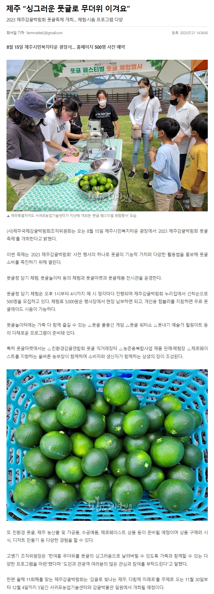 제주감귤박람회 풋귤축제, 내달 15일 시민복지타운서 개최