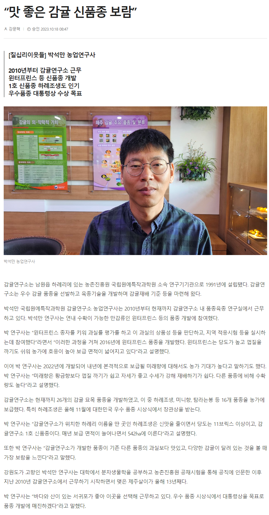 2178 | '비상품 아니예요'서울 청계천에 등장한 제주 풋귤 | 총무기획부 | 2025-08-28 | 731 | |