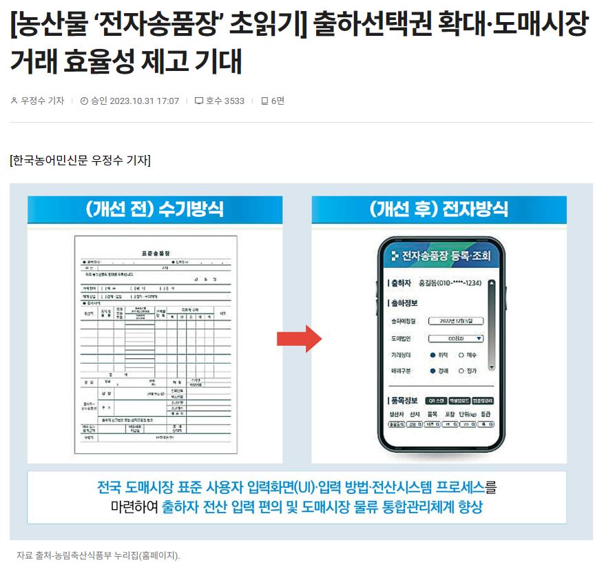 [농산물 ‘전자송품장’ 초읽기] 출하선택권 확대·도매시장 거래 효율성 제고 기대