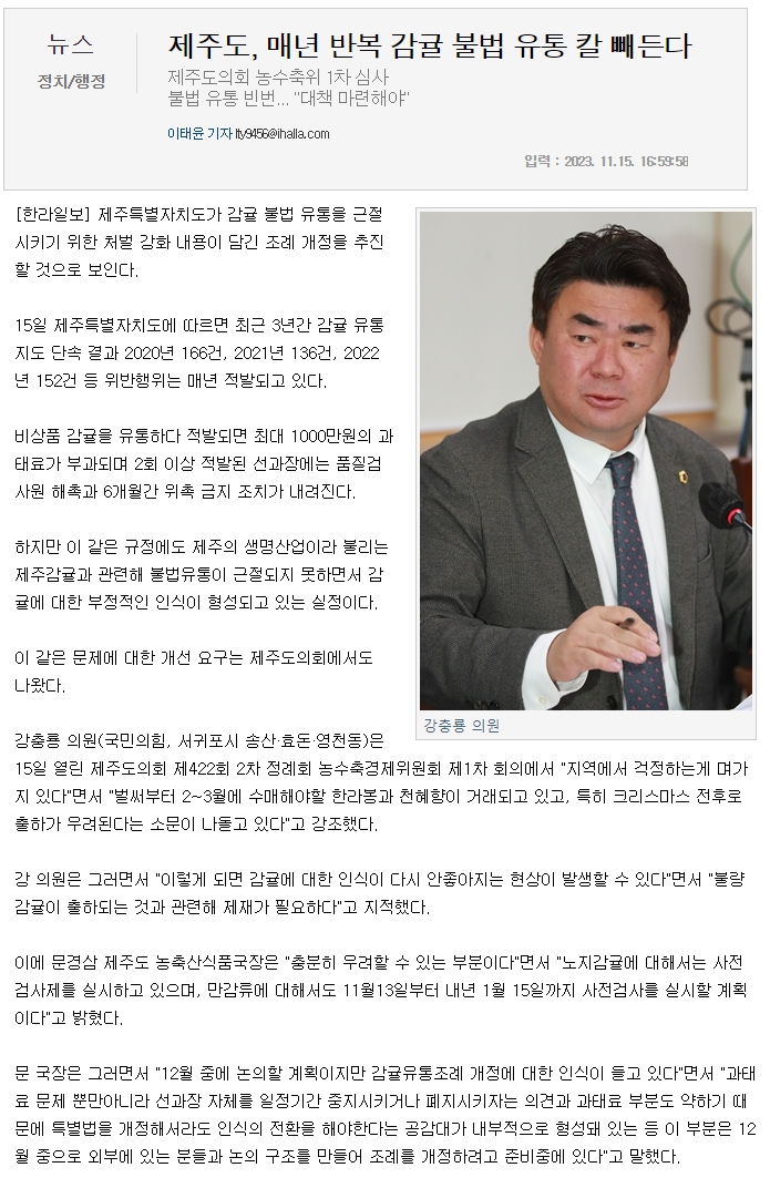 제주도, 매년 반복 감귤 불법 유통 칼 빼든다