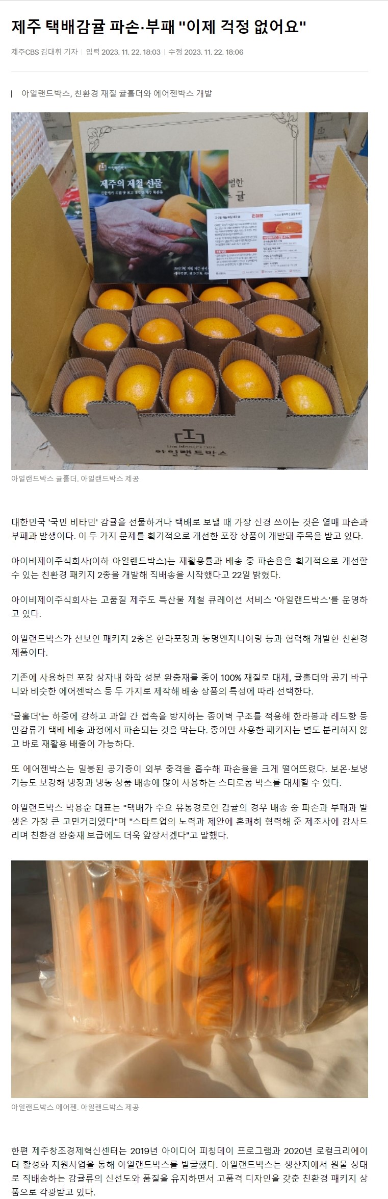 제주 택배감귤 파손‧부패 "이제 걱정 없어요"