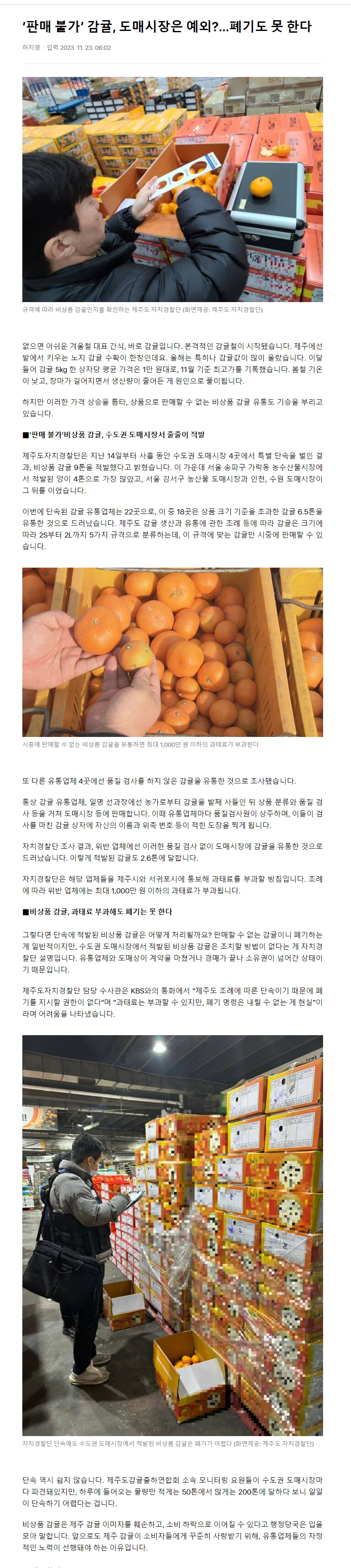 ‘판매 불가’ 감귤, 도매시장은 예외?…폐기도 못 한다