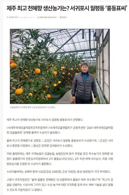 제주 최고 천혜향 생산농가는? 서귀포시 월평동 ‘홍동표씨’