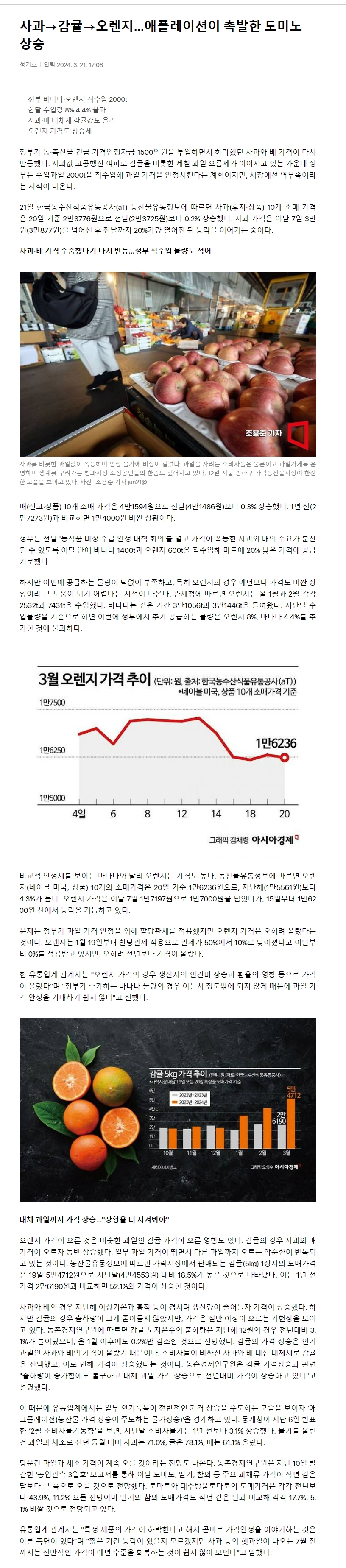 "감귤값 작년보다 2.5배↑"…생산자물가, 석달째 '상승'