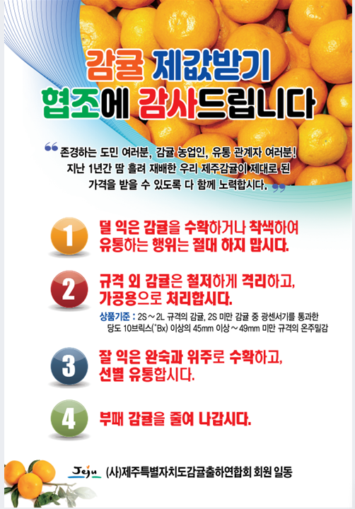(호소문)감귤 제값받기 협조에 감사 드립니다.