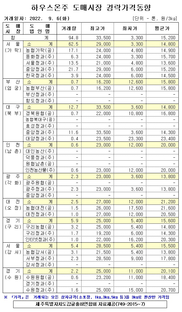 [하우스온주]2022년산 출하 및 가격동향(9/15)