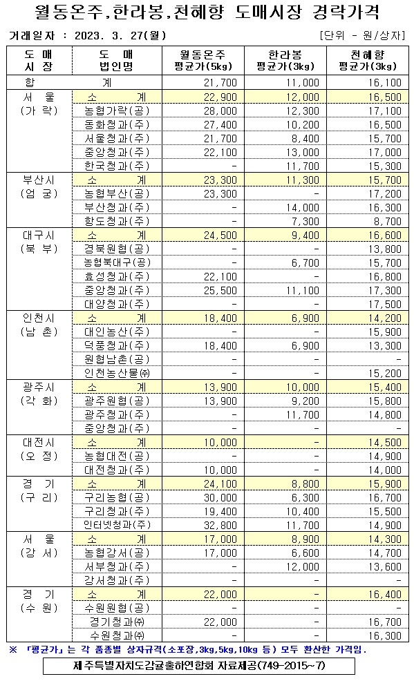 4303 [하우스온주]2025년산 출하 및 가격동향(10/15) 1 감귤부 2025-10-15 233