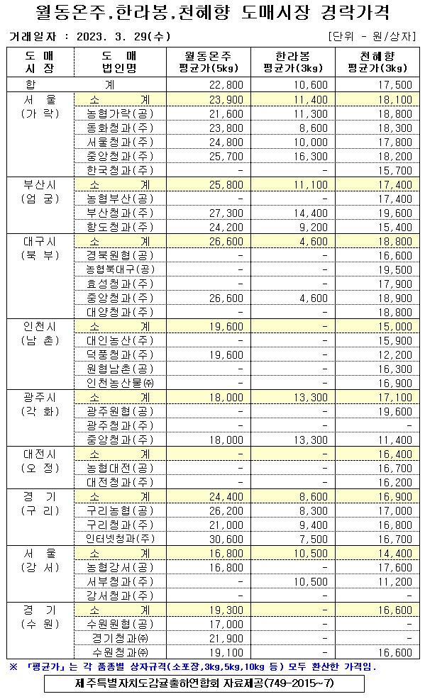 4303 [하우스온주]2025년산 출하 및 가격동향(10/15) 1 감귤부 2025-10-15 235
