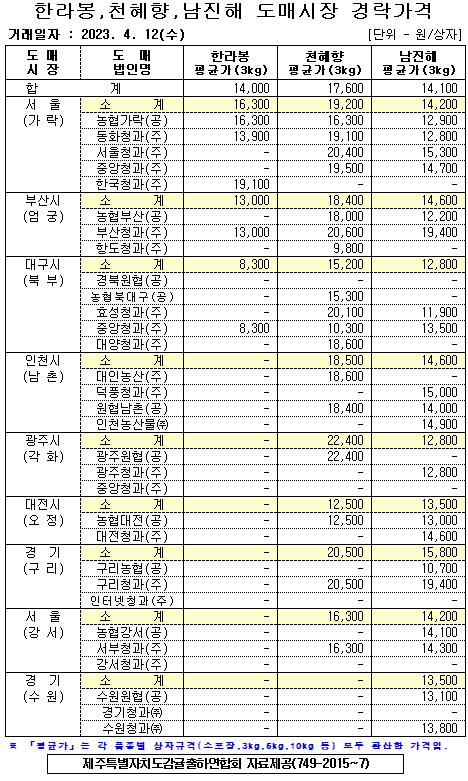 4302 [노지온주]2025년산 출하 및 가격동향(10/14) 1 감귤부 2025-10-14 387