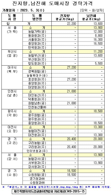 4304 [노지온주]2025년산 출하 및 가격동향(10/15) 1 감귤부 2025-10-15 313