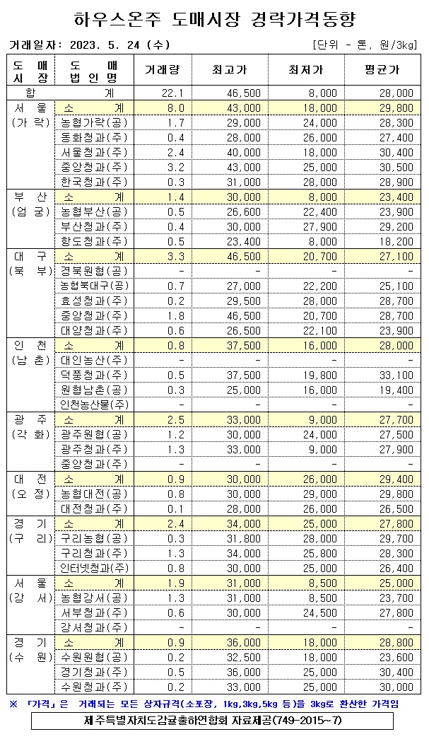 4303 [하우스온주]2025년산 출하 및 가격동향(10/15) 1 감귤부 2025-10-15 169