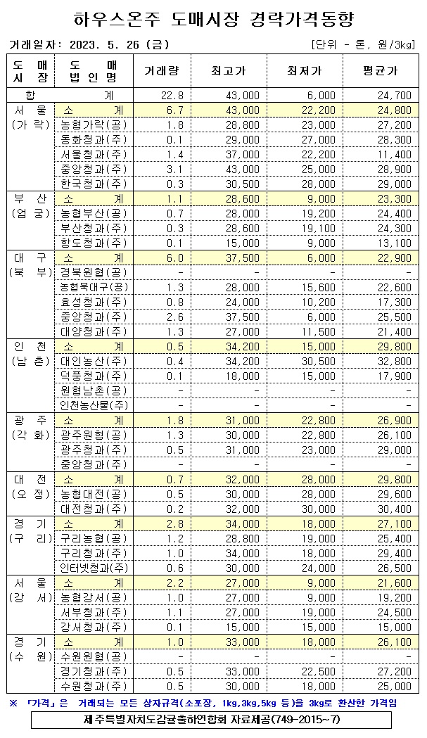 4303 [하우스온주]2025년산 출하 및 가격동향(10/15) 1 감귤부 2025-10-15 169