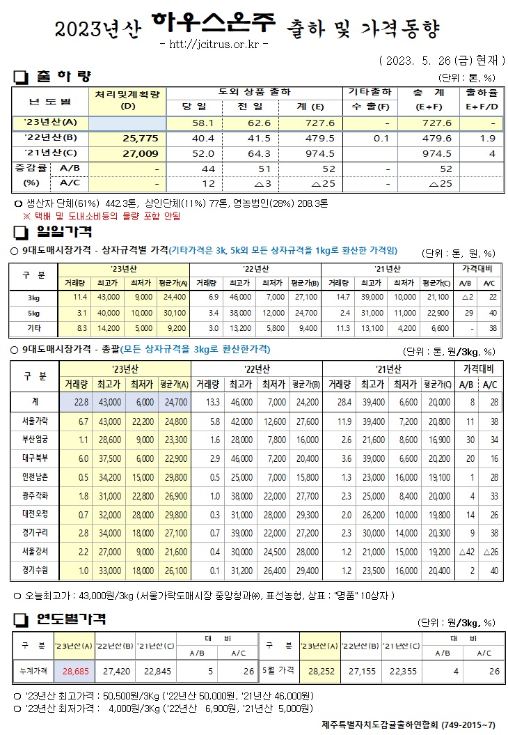 [하우스온주]2025년산 출하 및 가격동향(10/15)