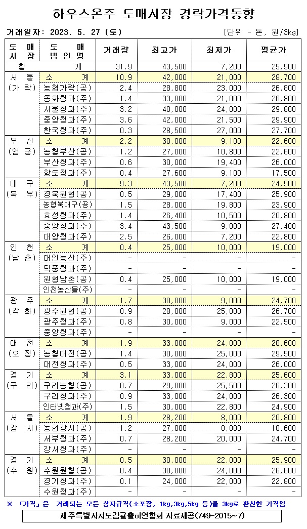 4303 [하우스온주]2025년산 출하 및 가격동향(10/15) 1 감귤부 2025-10-15 169