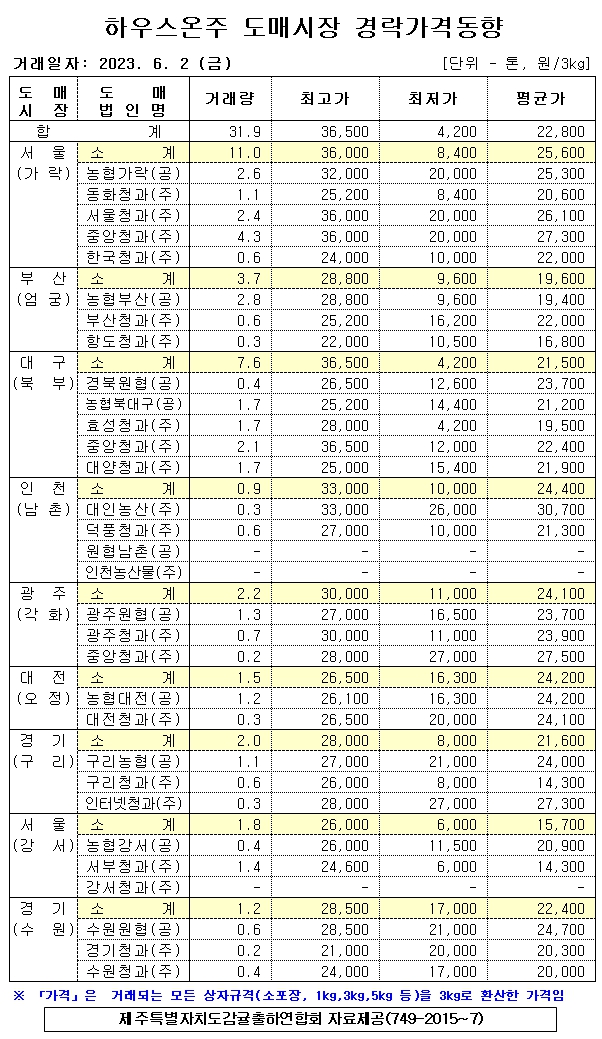 4303 [하우스온주]2025년산 출하 및 가격동향(10/15) 1 감귤부 2025-10-15 254