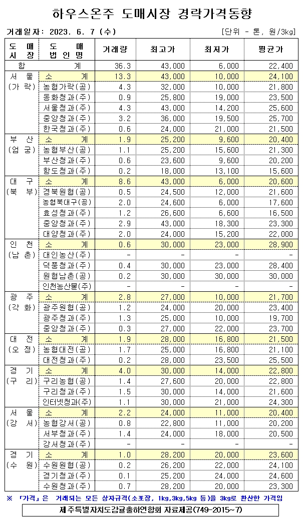 4303 [하우스온주]2025년산 출하 및 가격동향(10/15) 1 감귤부 2025-10-15 254