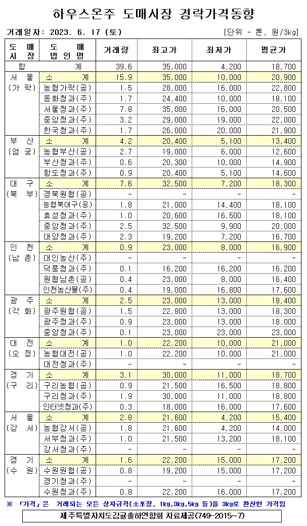 4305 [하우스온주]2025년산 출하 및 가격동향(10/16) 1 감귤부 2025-10-16 23