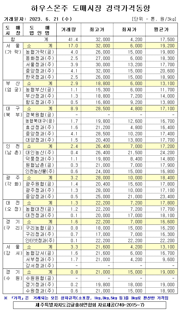 4290 [하우스온주]2025년산 출하 및 가격동향(10/5) 1 감귤부 2025-10-09 406
