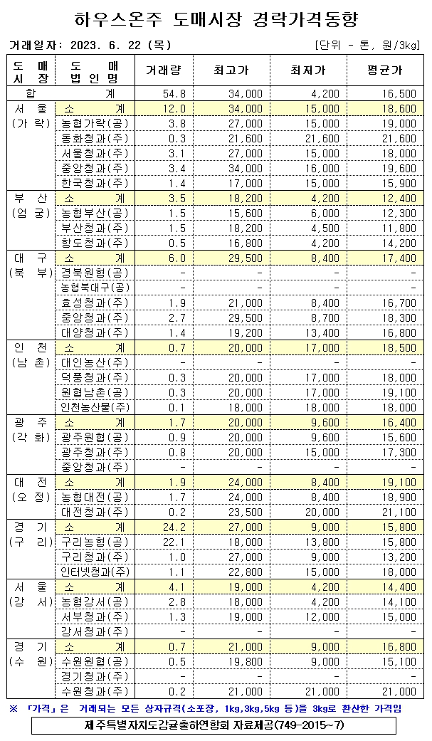 4303 [하우스온주]2025년산 출하 및 가격동향(10/15) 1 감귤부 2025-10-15 254