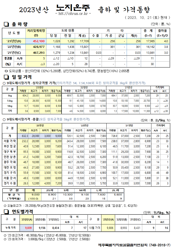 [노지온주]2025년산 출하 및 가격동향(10/10)