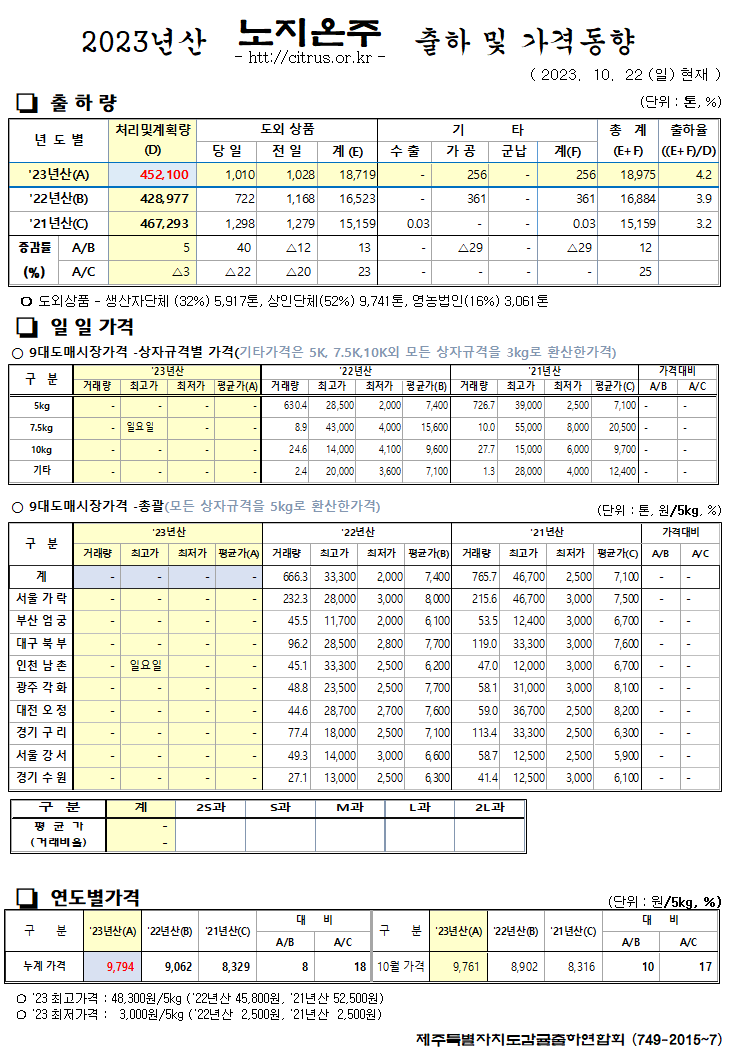[노지온주]2025년산 출하 및 가격동향(10/15)