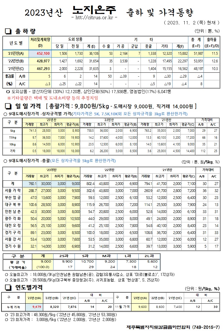 [노지온주]2023년산 출하 및 가격동향(11/2)