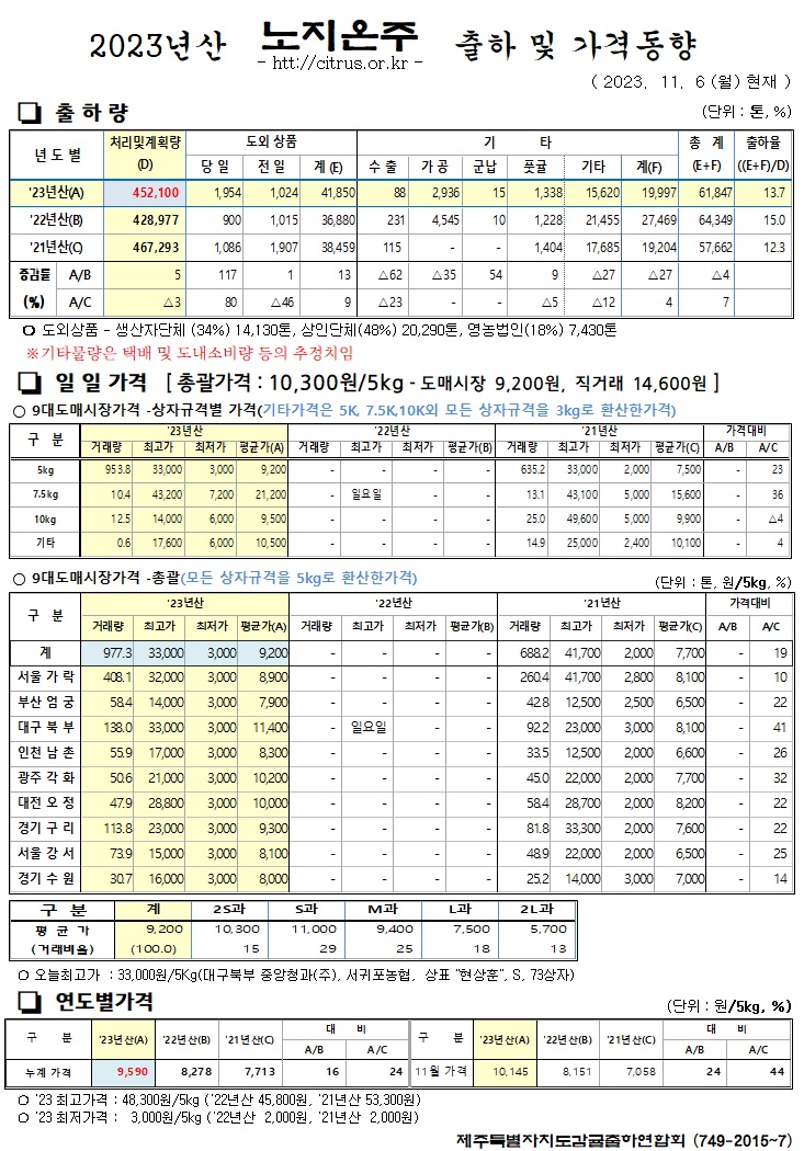 [노지온주]2023년산 출하 및 가격동향(11/6)
