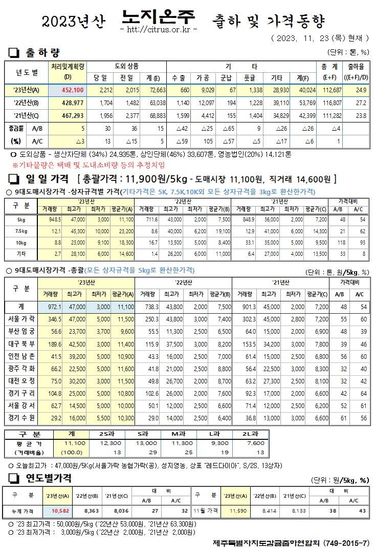 [노지온주]2023년산 출하 및 가격동향(11/23)