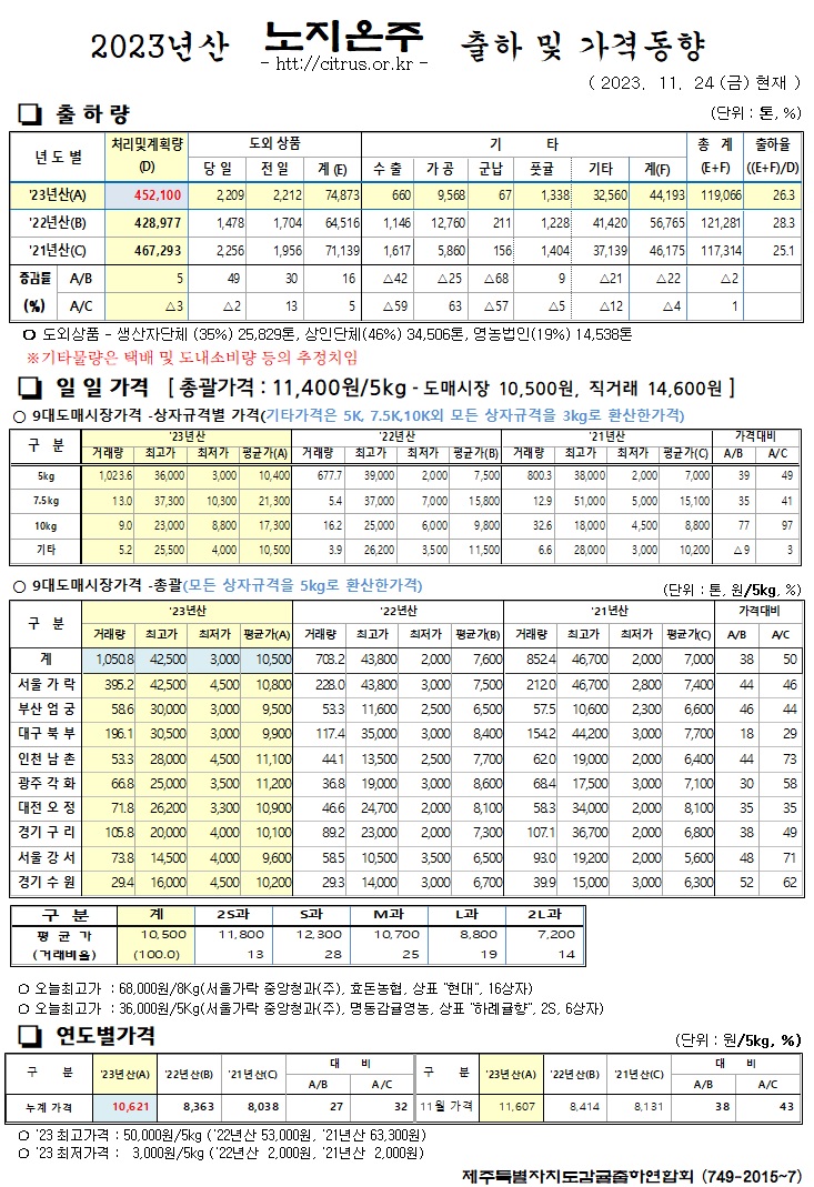 [노지온주]2023년산 출하 및 가격동향(11/24)