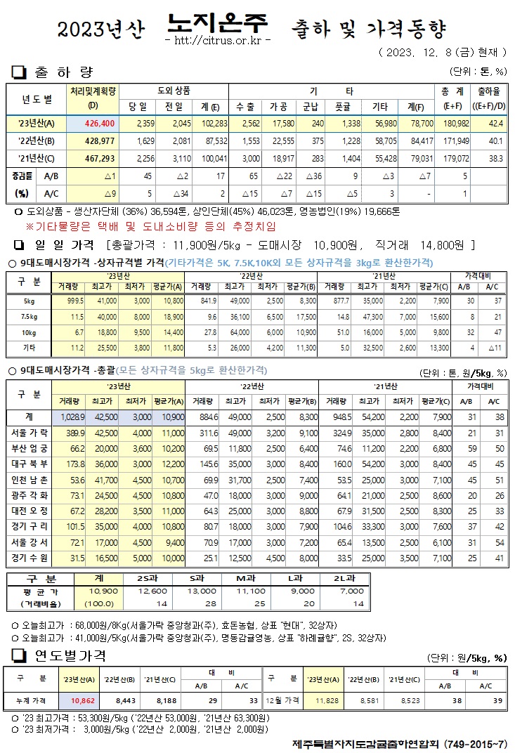 [노지온주]2025년산 출하 및 가격동향(10/10)