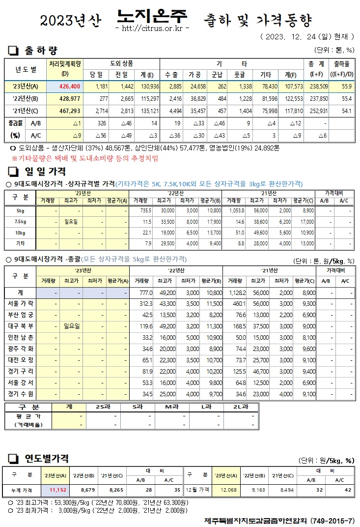 [노지온주]2025년산 출하 및 가격동향(10/15)