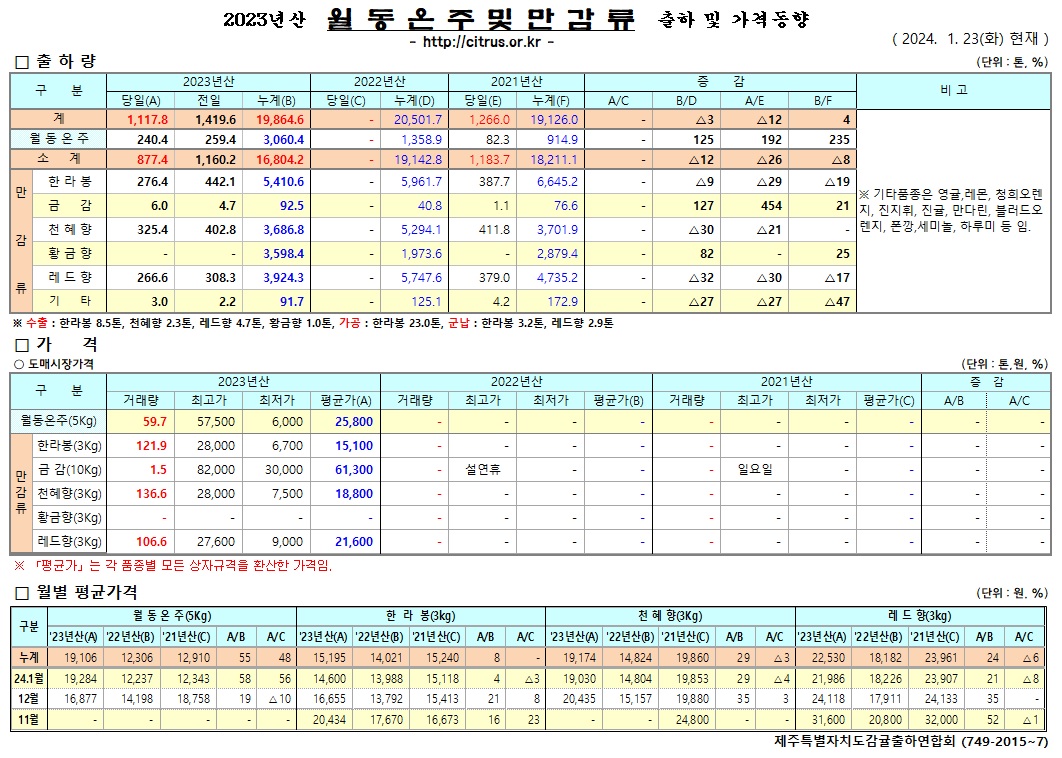 [노지온주]2025년산 출하 및 가격동향(10/9)