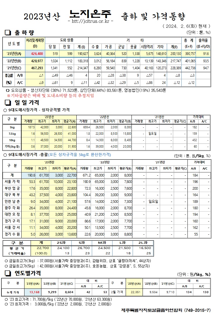 [노지온주]2023년산 출하 및 가격동향(2/6)