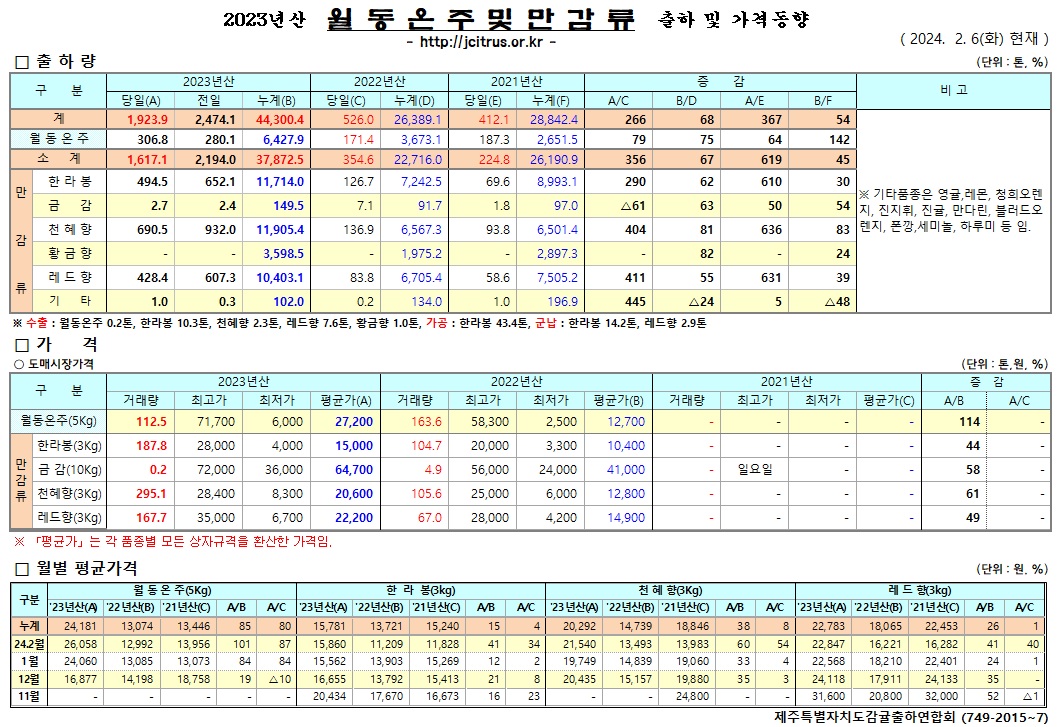 [월동&만감]2023년산 출하 및 가격동향(2/6)