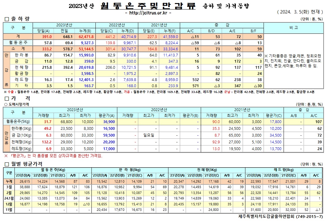 [월동&만감]2023년산 출하 및 가격동향(3/5)