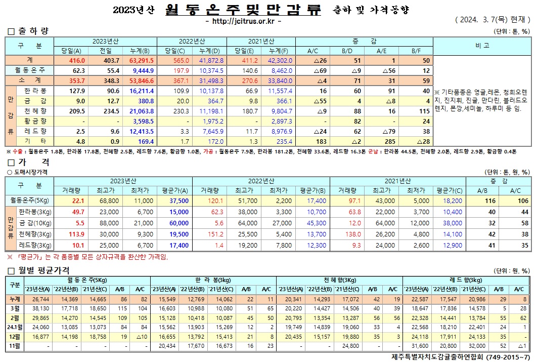 [월동&만감]2023년산 출하 및 가격동향(3/7)