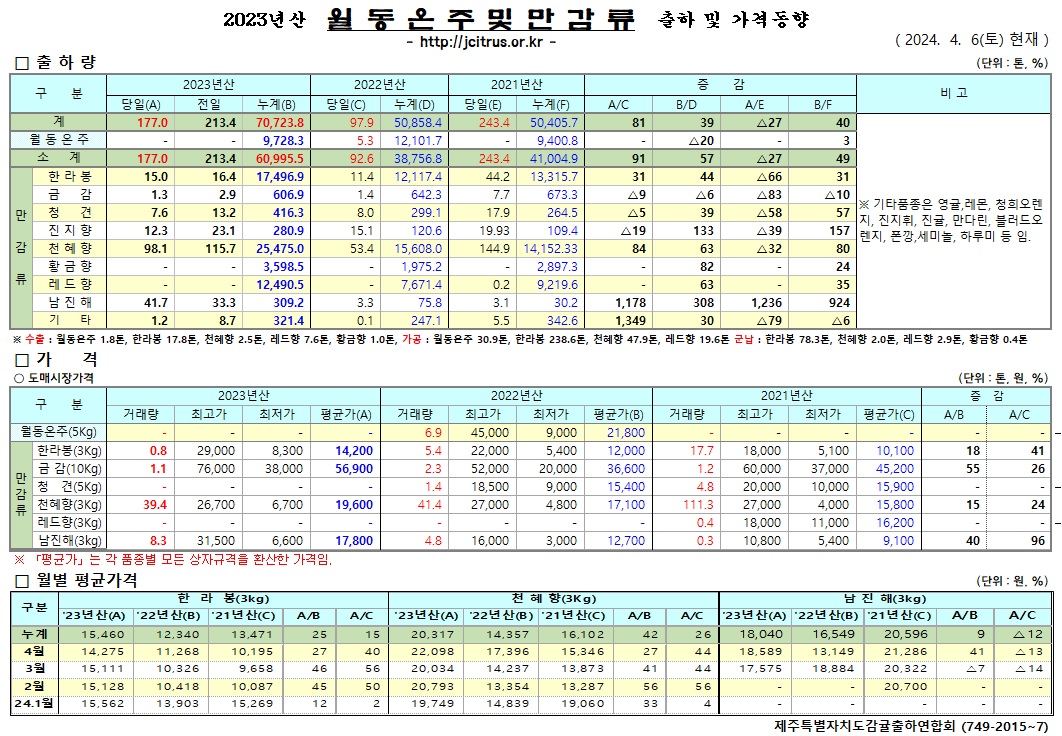 [월동&만감]2023년산 출하 및 가격동향(4/6)
