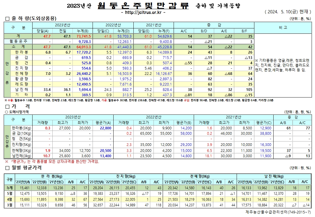 [노지온주]2025년산 출하 및 가격동향(10/10)