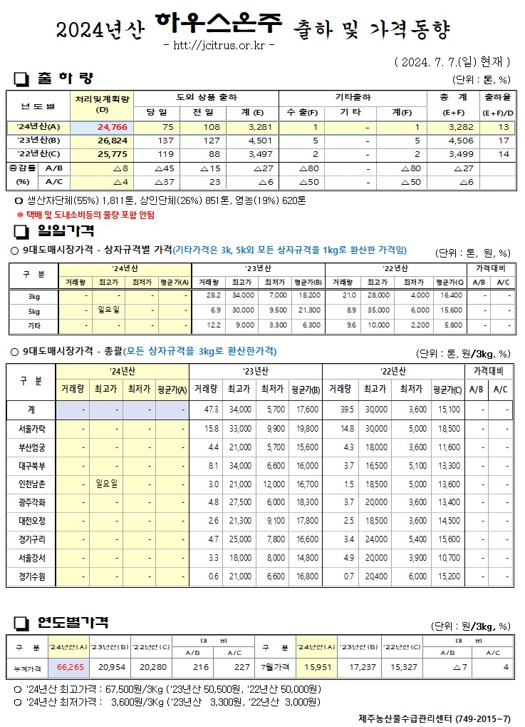 [하우스온주]2025년산 출하 및 가격동향(10/9)
