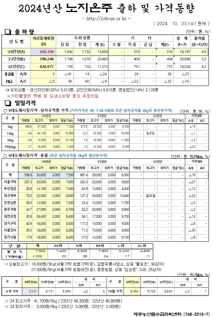 [노지온주]2024년산 출하 및 가격동향(10/23)