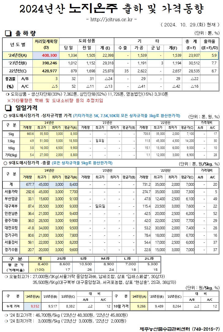 [노지온주]2024년산 출하 및 가격동향(10/29)