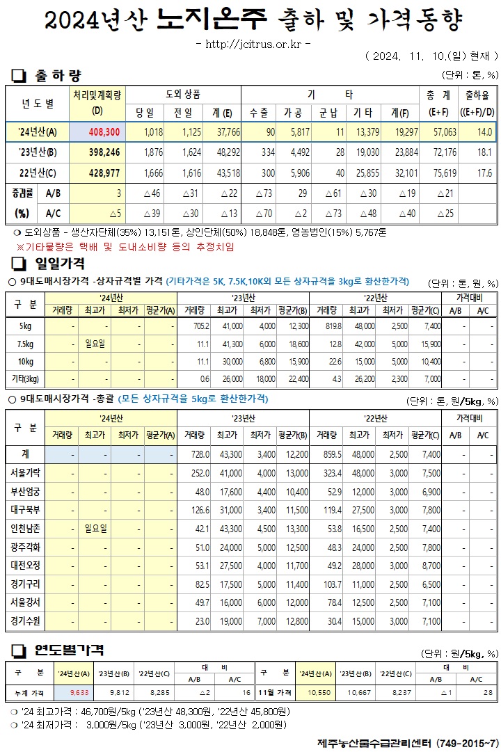 [노지온주]2024년산 출하 및 가격동향(11/10)