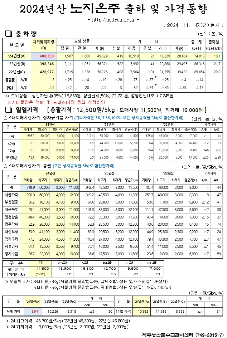 [노지온주]2024년산 출하 및 가격동향(11/15)