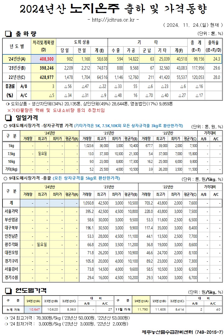 [노지온주]2024년산 출하 및 가격동향(11/24)