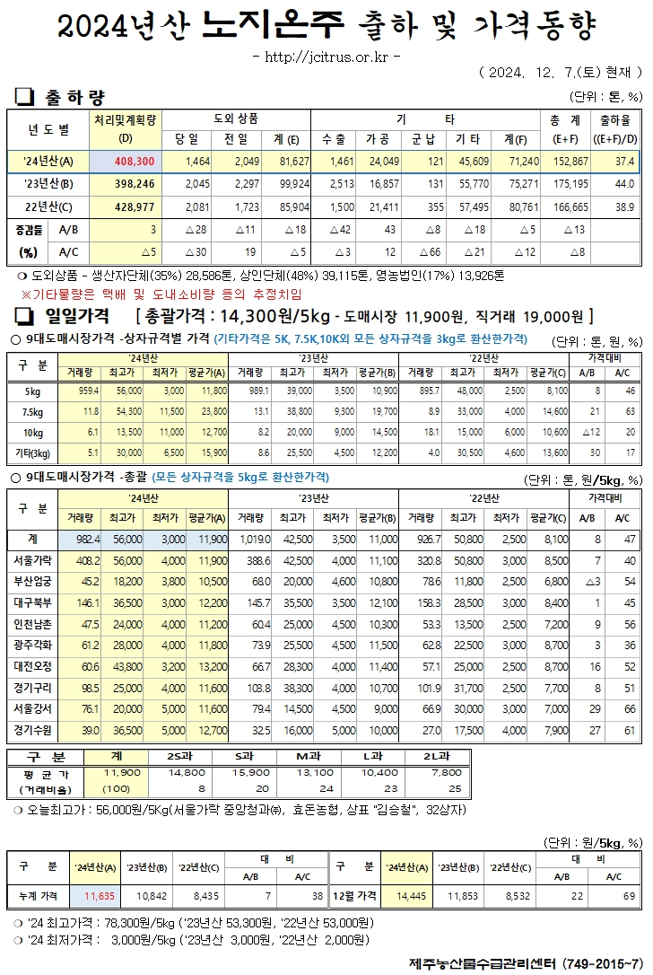 [노지온주]2024년산 출하 및 가격동향(12/7)