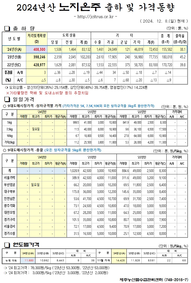 [노지온주]2024년산 출하 및 가격동향(12/8)